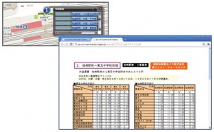 本画面では、柏崎都市計画用途地域図を閲覧している画面である。このように、業務用主題図とGoogle Mapsを重ねて表示するアプリケーションとなっている。背景のGoogle Mapsについては、地図、航空写真、地名付き航空写真を簡単に切り替えることができる。