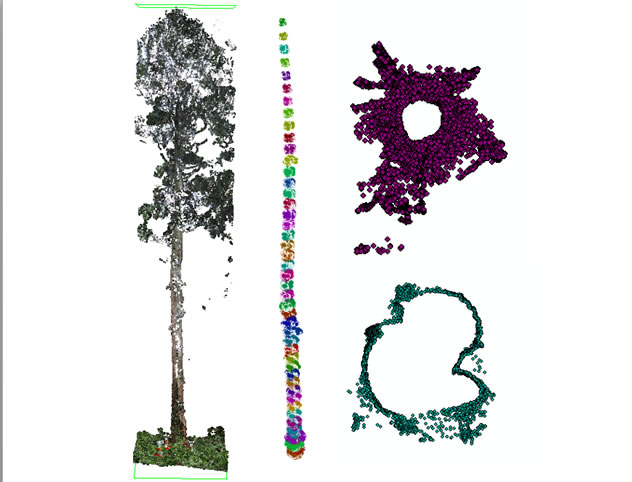 レーザーによって樹木を3次元計測し、毎木調査を自動化することで、森林調査を効率化する