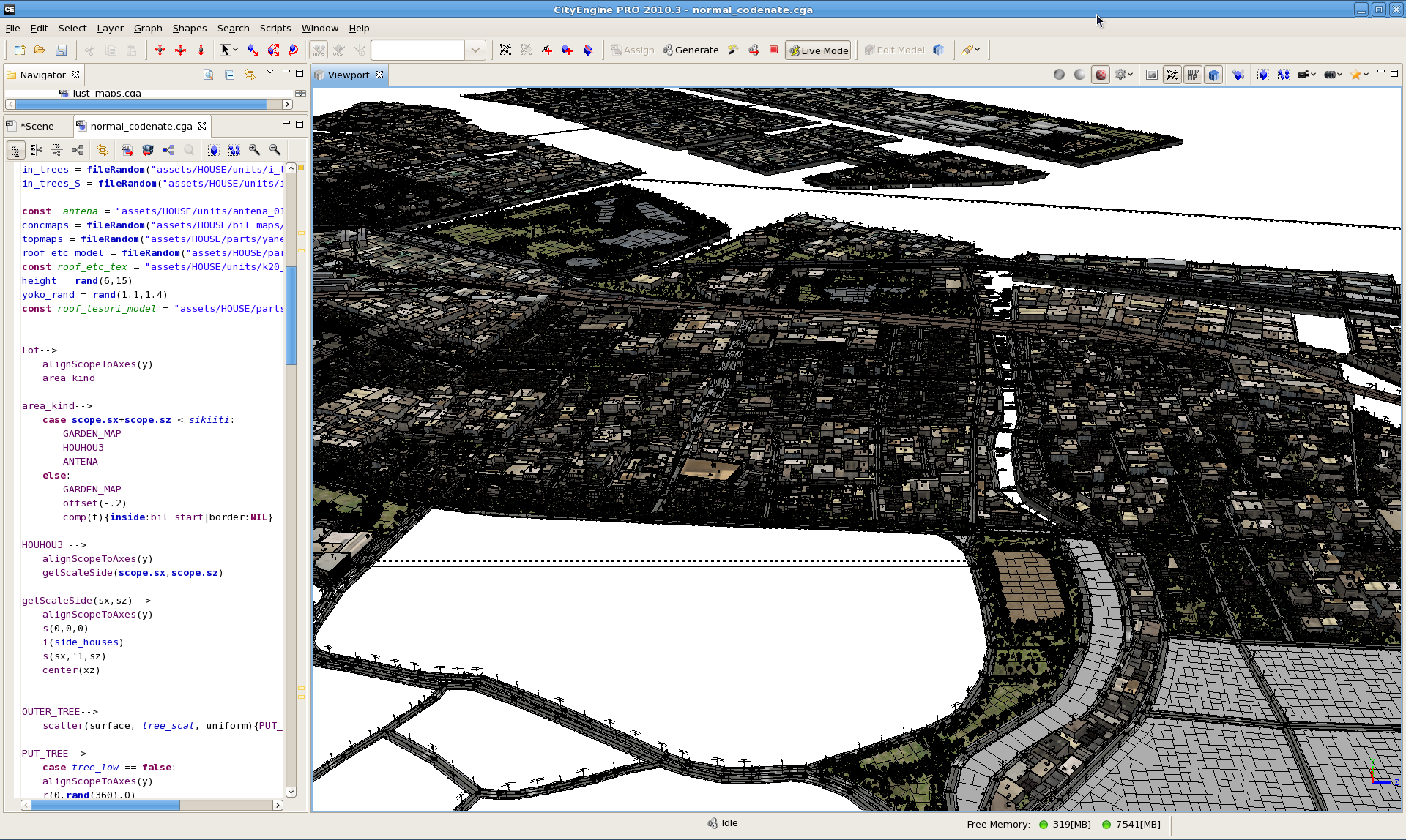 「敷地の中にどの大きさの建物を何件建てればいいのかと考えて配置するのは(通常は)難しいですよね。Esri CityEngine の場合、敷地面積に応じて建物を自動で配置してくれますし、できあがった街はなんとなく都市計画に準じた見え方になるんですね。それをカメラから覗くと自分達で想像して作った街並みとは違うリアルなものが見えてくる。そういった意味でものすごく良いソフトだと思います。」(高橋氏)