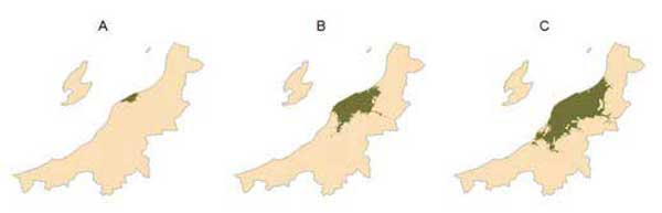そのため、DPCの調査結果を利用して、大学病院入院患者において二次医療および三次医療を行った患者の割合とそれに対応した実勢診療圏を推測し、その年次変化を検討した。解析方法としては、A群(三次医療を要する疾患)、B群(二次医療を要する疾患)の割合と年次変化を調べるために、入院患者の過去のDPCを平成18年度の定義でコーディングし直した。次に入院患者を住所でジオコーディングし、GISを用いて道路を用いた移動時間を基にした各groupの年毎の実勢診療圏の面積を算出した。