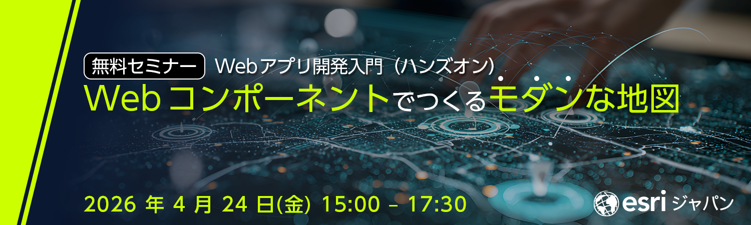 弊社が取り扱う ArcGIS でも、地図を表示するための Web コンポーネントや、洗練された UI を実現できる Web コンポーネントが提供されており、地図を用いた Web アプリを手軽に作れるようになっています。