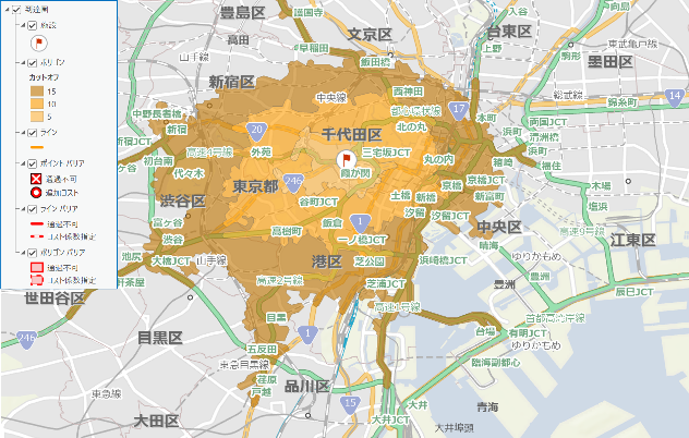 - ルート解析、到達圏、ロケーションアロケーションなどのネットワーク解析が可能