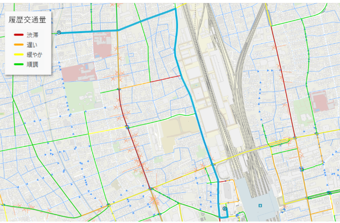 履歴交通量を加味した道路ネットワーク解析が可能 -