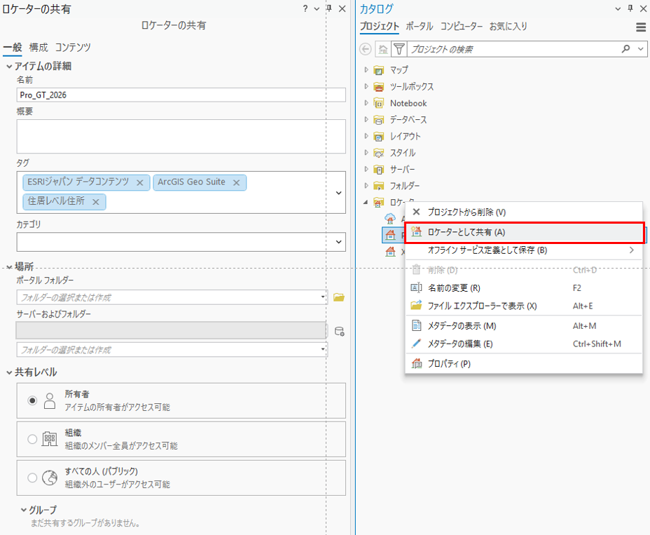 | ・2022/8/5 | 住居レベル住所 2022 以前に収録されているロケーターは、ArcGIS Pro 3.0 以降で利用することはできません。 |