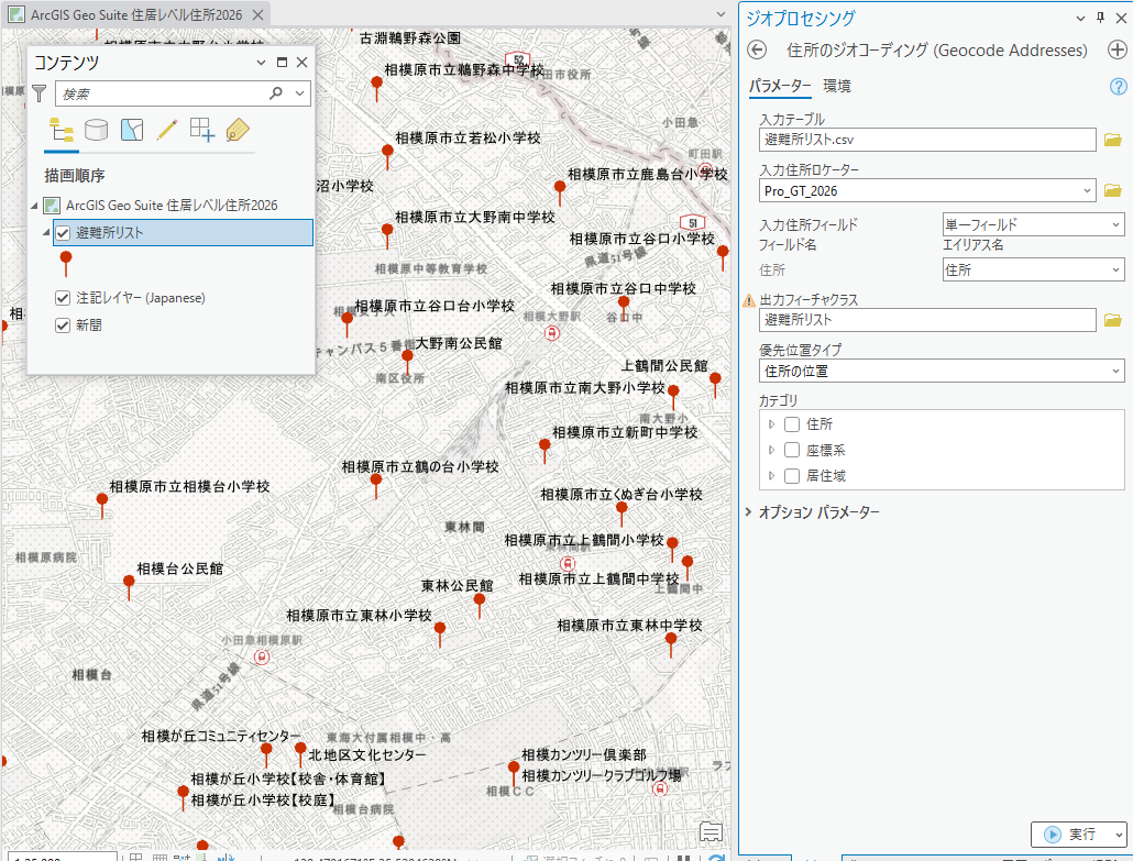 | ・2022/8/5 | 住居レベル住所 2022 以前に収録されているロケーターは、ArcGIS Pro 3.0 以降で利用することはできません。 |
