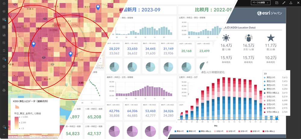 KDDI 株式会社の au スマートフォンから得られる GPS の位置情報/属性(性別・年代)情報を基にした人流データを ArcGIS で利用可能な形式で配信するサービスです。