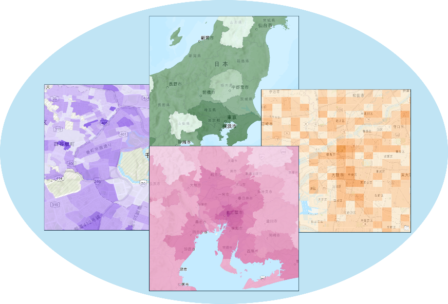 総務省統計局の統計調査に基づいた統計データを収録したデータベースです。境界データとともに提供しているため、統計表と町丁・字等ポリゴンの接合や、シンボル・表示縮尺の設定などの面倒な作業は不要で、地域分析やマーケティング戦略などの多彩な用途にすぐにご活用いただけます。