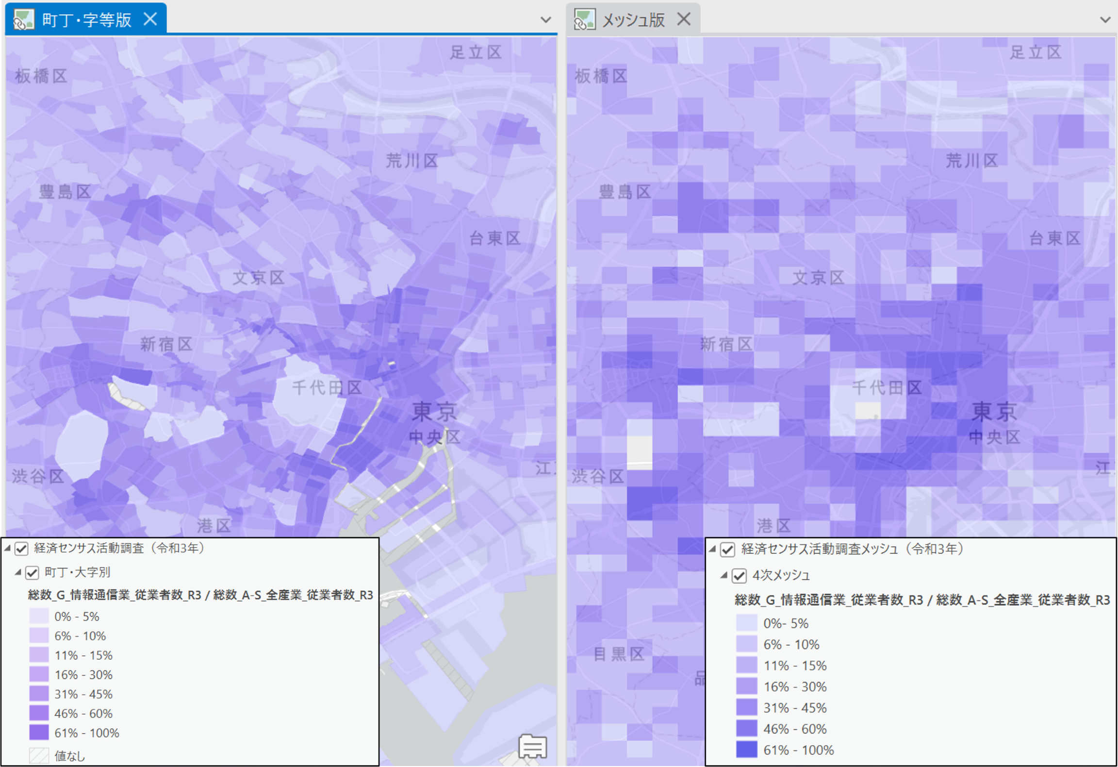 データは、メッシュ版と町丁・字等版を両方収録しています。