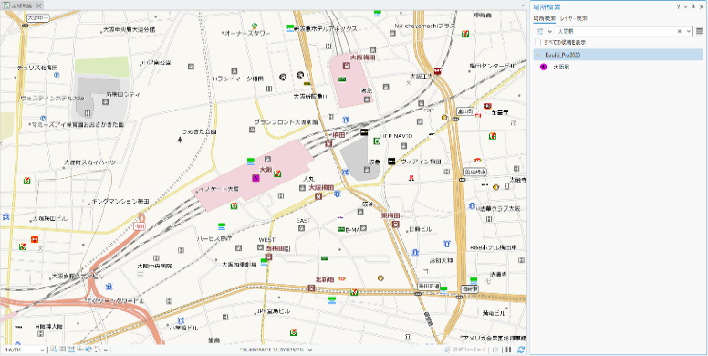 株式会社ゼンリンの地図データ、国土交通省の基盤地図情報などを加工して、全国シームレスに整備した最新の背景地図データベースです。プロフェッショナルによるフルチューニングが施されたジオデータベースとマップは、高速で美しい地図描画を実現しています。店舗や銀行などの民間の POI(目標物)データを多数収録しています。また、POI ロケーターを収録しているため、ArcGIS 標準のジオコーディング ツールを使って、駅名、郵便番号、電話番号、交差点名、注記(小中縮尺)、施設名から目標物検索が可能です。