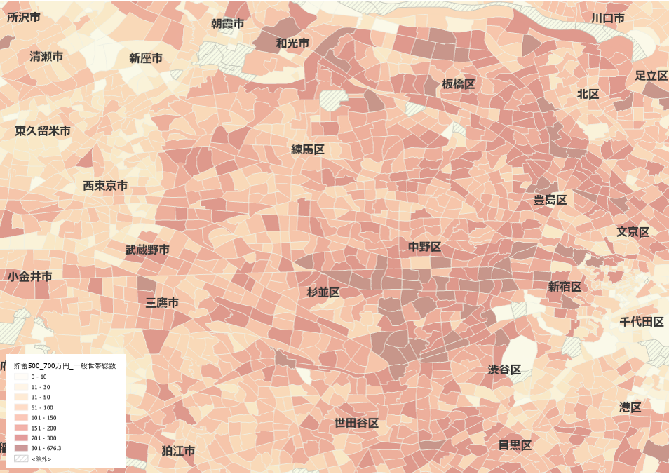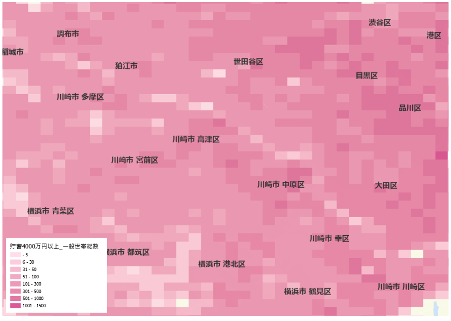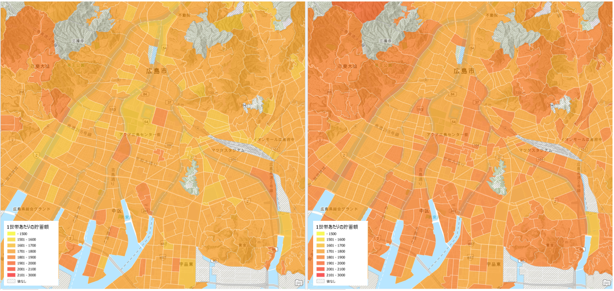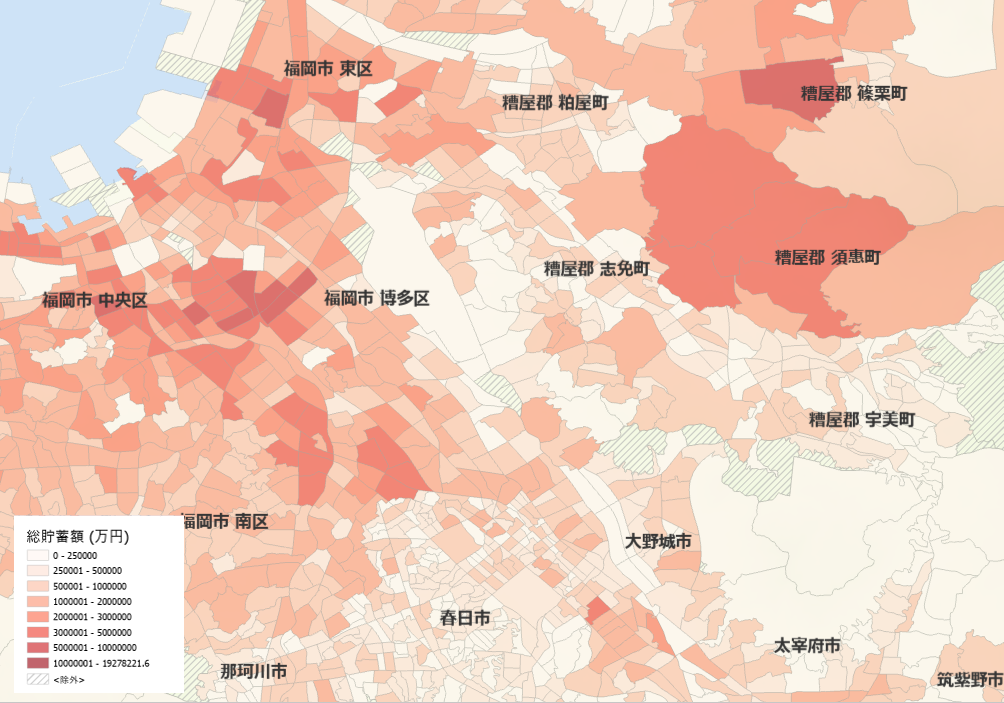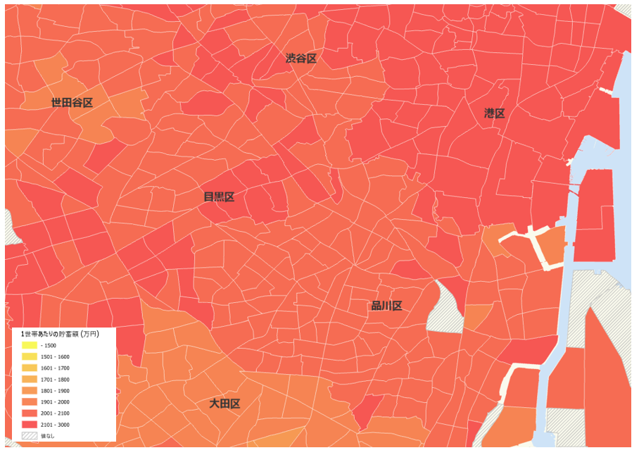 国勢調査小地域や 500m メッシュで表す地域の貯蓄額