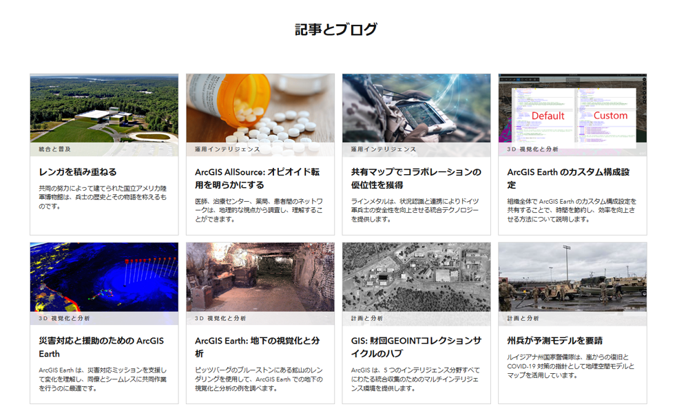 デモやソリューションなど、防衛・安全保障における GIS の活用方法をまとめたポータルサイトです。