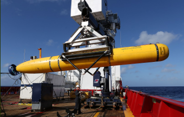 第 2 フェーズでは、自動航行の調査潜水艦が使用されました。装置に搭載されたサイドスキャンソナーおよびマルチビームソナーを使用して、12 万平方キロメートル以上の範囲において高解像度のデータを収集しました。要調査個所については個別に近づいて詳細調査が行われました。