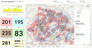 また、日野市が抱えるベッドタウンの高齢化と産業の構造転換という2つの大きな地域課題に対し、ArcGISを用いて地域課題の可視化と分析を行い、政策立案や対策支援に役立てています。2023年には、4市共同(日野市・立川市・三鷹市・小金井市)による住民情報を管理するシステムとの連携環境を整備し、さらなる地域課題解決のためのGISプラットフォーム構築を目指しています。