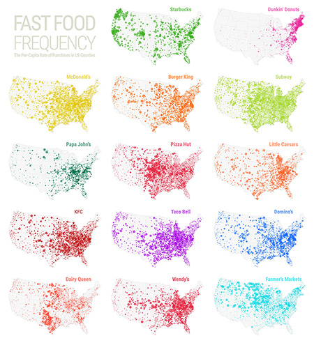 地域ごとにファストフード店の分布を表現したマップを公開しています。