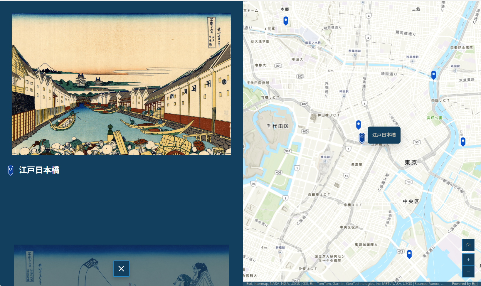 本ストーリー マップは、『富嶽三十六景』の 46 枚それぞれが描かれたと推定される場所を地図にプロットし、それと連動して浮世絵が表示されるようにしました。富士山が世界文化遺産に登録されましたが、江戸時代においても富士山は信仰の対象であり、芸術の源泉でした。このストーリー マップを見ることで、江戸時代では東京都内からも富士山が美しく見えたことが推測できます。今と変わらない景色、今となってはもう見ることができなくなった景色に思いを馳せてみるのはいかがでしょうか?