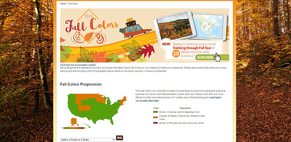 米国フォレストサービス(USFS:米国農務省林野部)が作成した紅葉ストーリーマップ