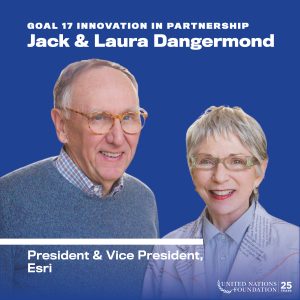 2023年11月21日国連財団のグローバル・リーダーシップ・アワード2023にてEsri 社ジャック・デンジャモンド社長、ローラ夫人が「Goal 17 Innovation in Partnership賞」を受賞