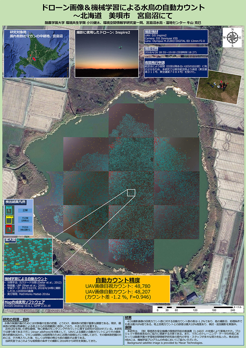 2019年06月17日マップギャラリー2019 第 1 位 「ドローン画像&機械学習による水鳥の自動カウント~北海道 美唄市 宮島沼にて」