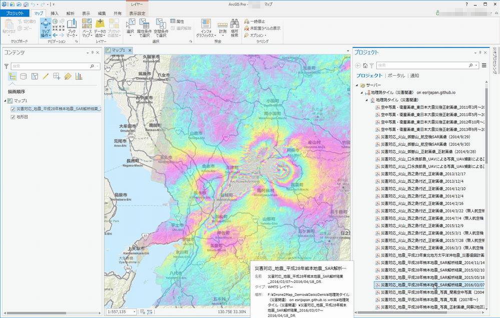 日本国内の行政機関や研究機関、自治体などでも、所有しているデータを Web 上に公開することが一般的になってきました。画像ファイルや PDF の地図としてではなく、Web レイヤーとして公開された画像があれば、災害時にはこれを背景として GIS データを更新したり、必要な情報を集めてマッシュアップしたWebマップをすぐに作成し、迅速かつ適切な意思決定に活用することができます。