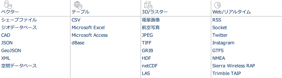 ArcGIS は多様なデータ形式をサポートしており、ユーザーが持つ多くのデータを変換せず利用できます。