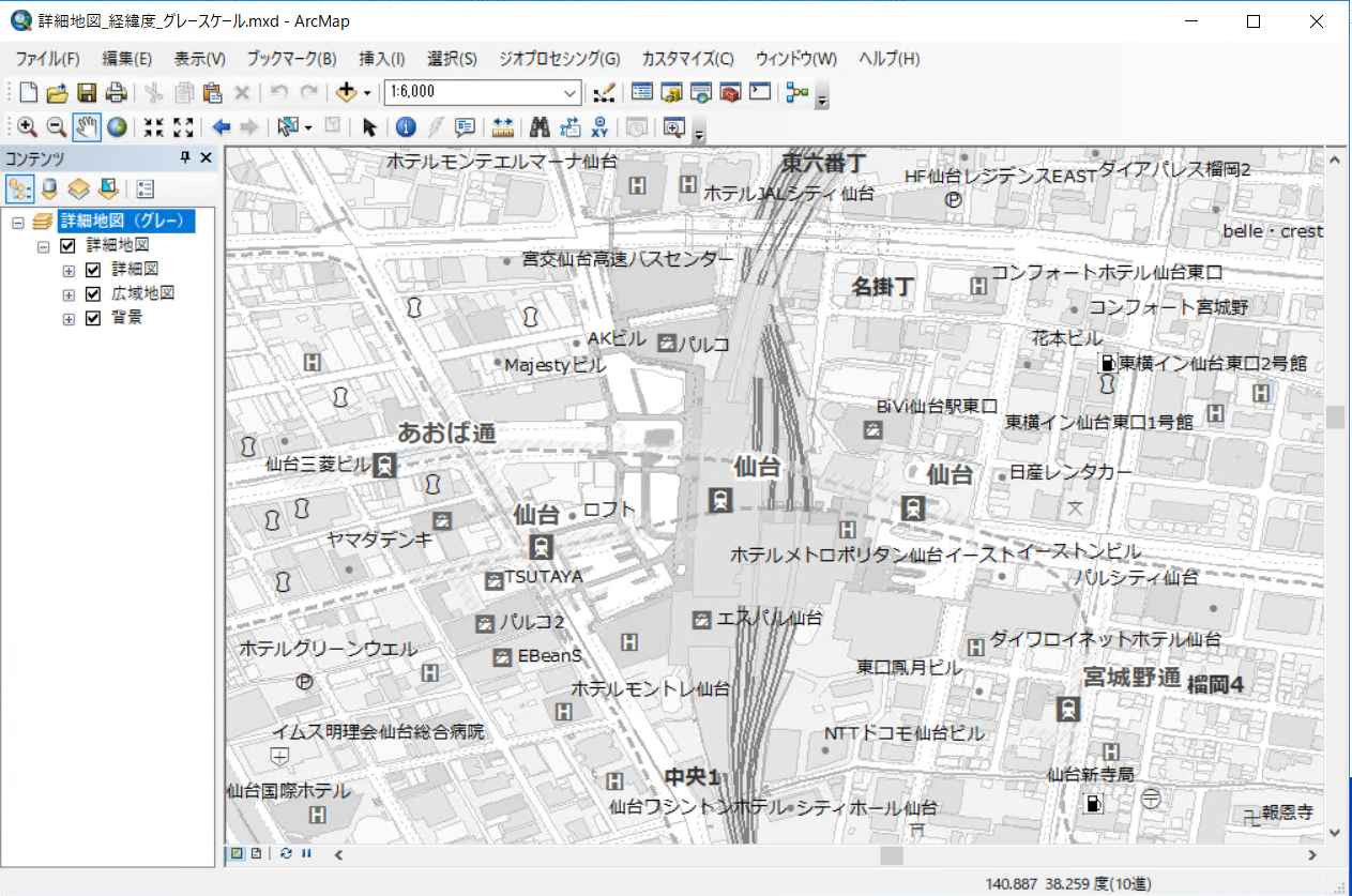 グレースケール版を ArcMap で表示 |