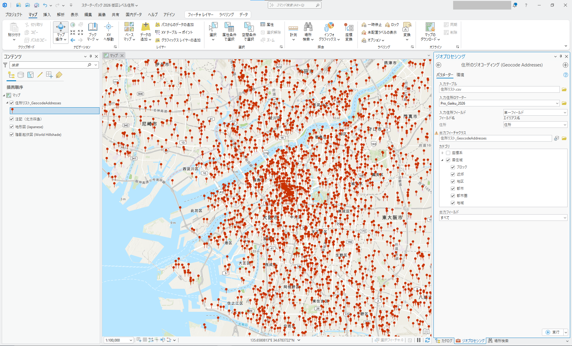 バッチ ジオコーディング(住所リストを一度にポイントに変換することが可能)