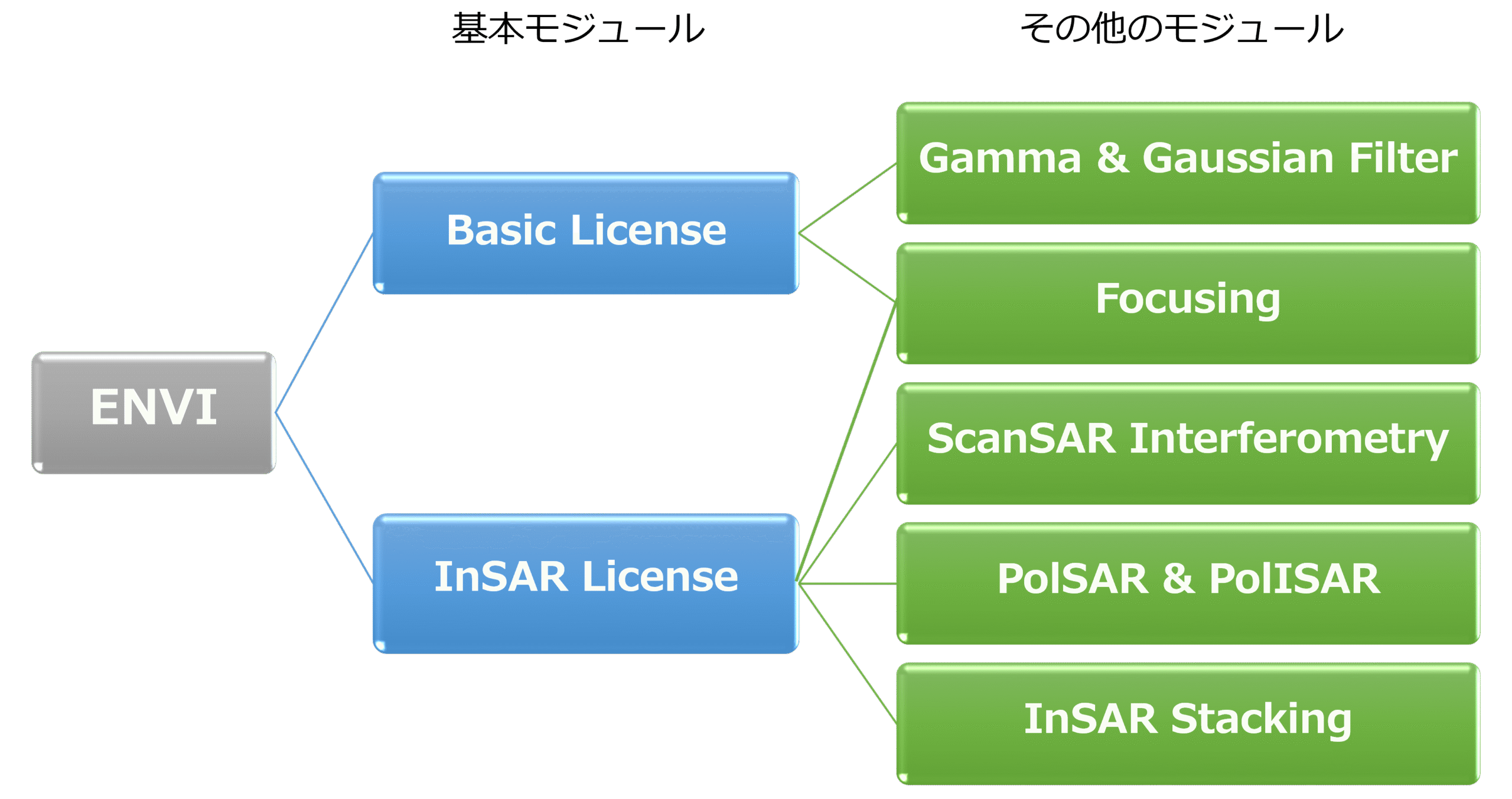 SARscape は、行いたい処理や解析によって必要なモジュールを追加して構成します。