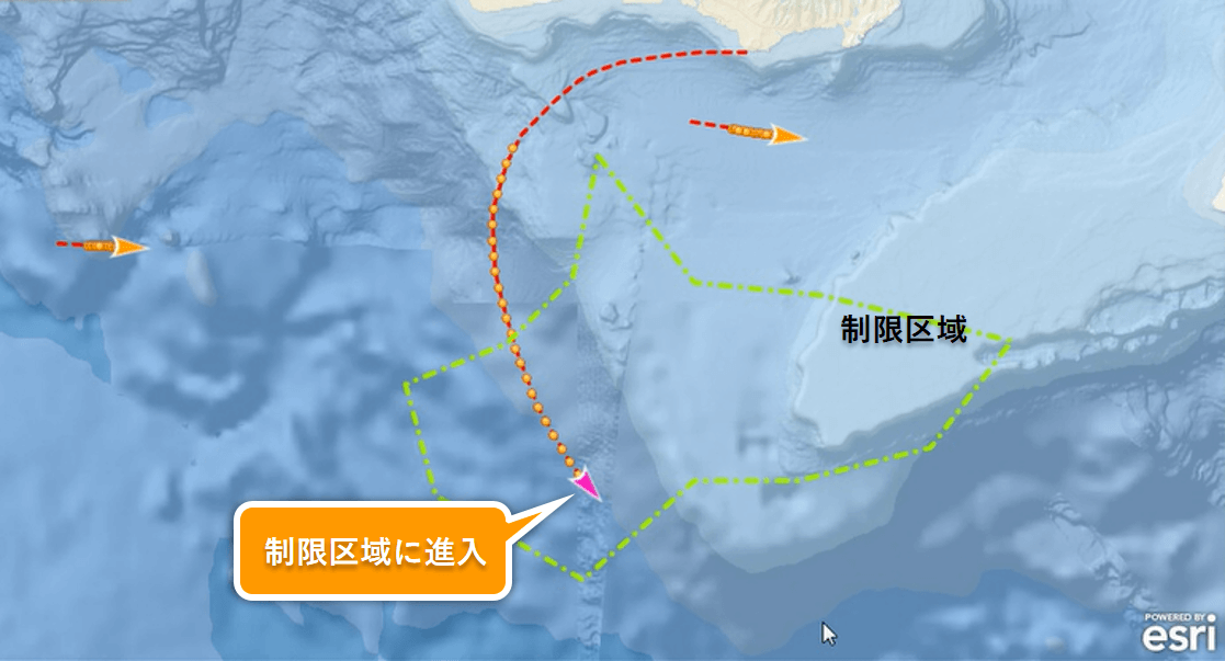 防災分野では、被災地の危険地域にジオフェンスを設定することで、そのエリアに市民が立ち入った際に、危険地域であることを通知するために活用できます。また、ジオフェンスは仮想的な境界なので、陸地だけではなく海上に設定することもできます。たとえば、海上の制限区域をジオフェンスとして設定し、制限区域に入った船舶がいないか監視するような活用も可能です。