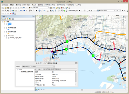 GIS データの位置情報として、緯度経度などの XY 情報が主に利用されますが、その位置情報に加え M 値(メジャー値)を含んだ GIS データをルート フィーチャクラスと呼びます。
