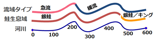 ある河川に生息する生物の生態域を解析するために利用することもできます。